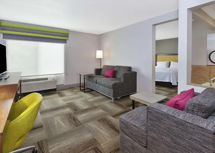 This property provides an indoor pool and a golf course for an extra charge. An indoor swimming pool and a fitness studio will help you stay healthy. The pet friendly Hampton Inn offers several sport activities such as snow skiing, bowling and cycling. Such spa facilities as a Jacuzzi and an indoor pool are available on site. Guests can have access to a business centre, and make use of banquet facilities and a desk.